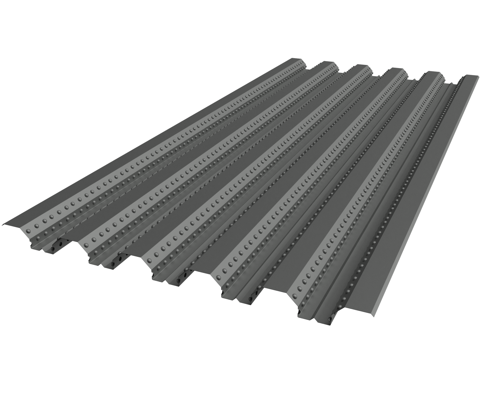 Hver plate er 125cm lang. Du skal ha minimum 5 cm overlapp mellom de forskjellige platetypene som viderefører det innebyggede fallet mellom bjelkene. Hvor mange plater du trenger av hver type, avhenger av lengde på bjelkene. Utgangspunktet for plateberegningen er alltid lengde på en plate: 125cm. de neste platene bygger hver seg 120cm videre fra den første platen.