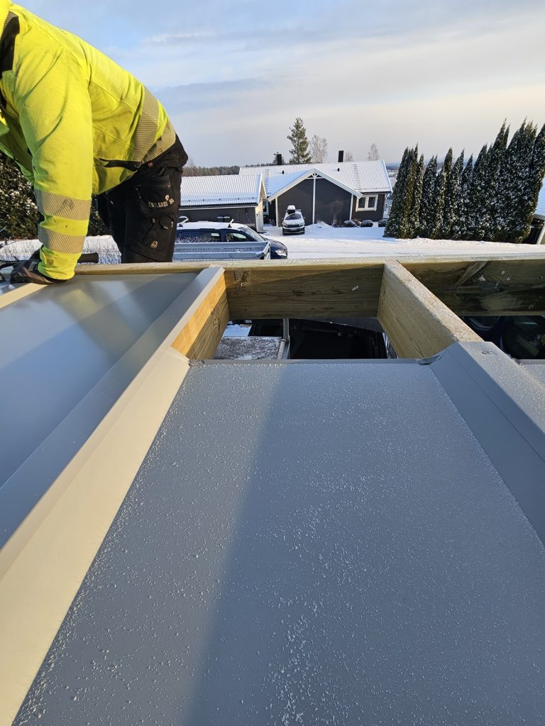 Da man monterer takrennen på innsiden av forkantbord, vendt innover mot husvegg, vil plate nr 1 og 2 dekke behovet perfekt, og lede vannet rett ned i takrennen i enden av plate nr 2.